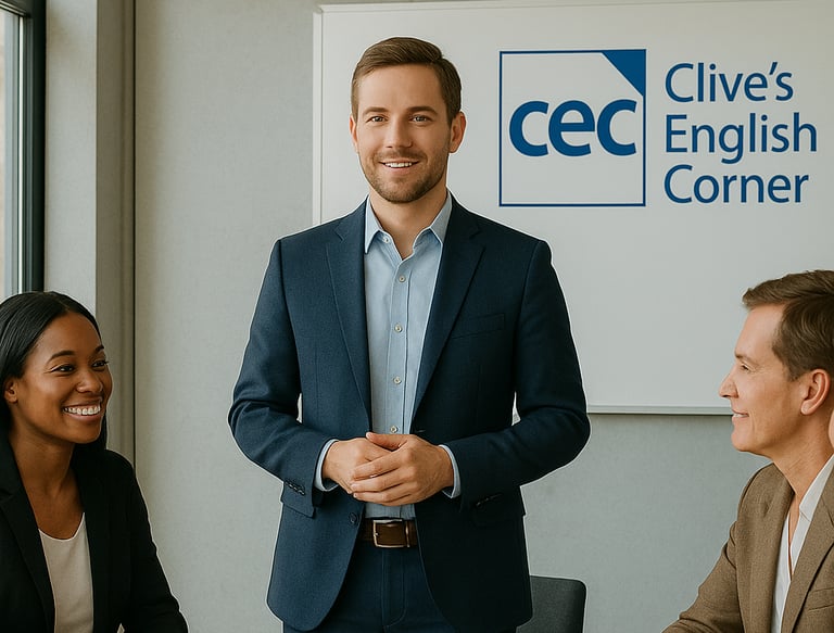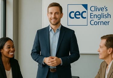 At Clive’s English Corner, we help professionals communicate in English as clearly and intelligently as they do in their native language. Our tailor-made training adapts to every level — from everyday conversation to high-stakes business communication.